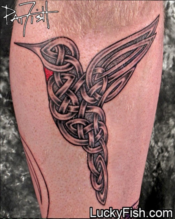 腿部飞行的蜂鸟程式化设计纹身