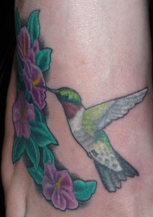 脚部彩色现实的小蜂鸟纹身图片