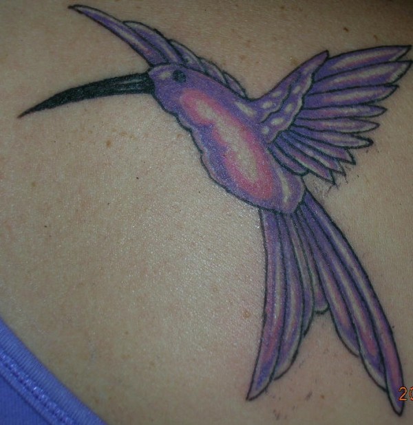 肩部彩色蜂鸟纹身图片