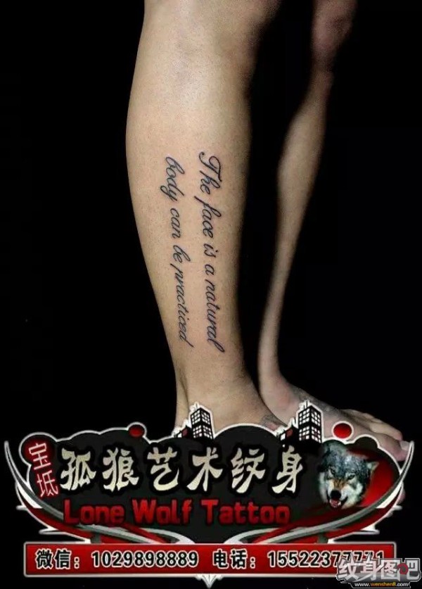 小腿励志英文纹身 天津宝坻孤狼纹身