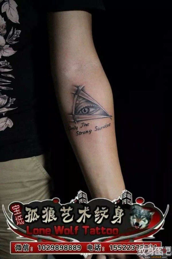 小臂上帝之眼纹身 天津宝坻孤狼纹身