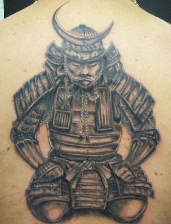背部灰色日本武士纹身图案