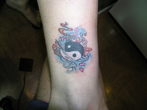 腿部彩色阴阳符号花纹纹身图片