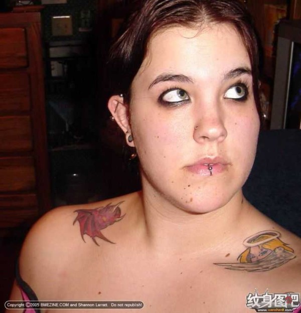 胖妹妹肩上的蝙蝠侠纹身