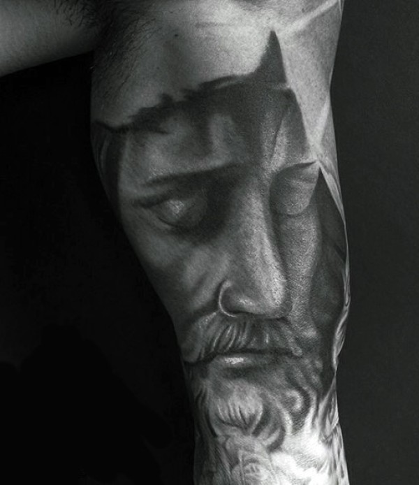 花臂灰色的水洗式耶稣肖像纹身图片