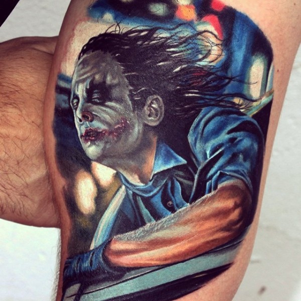 腿部现实主义风格的彩色小丑纹身图片