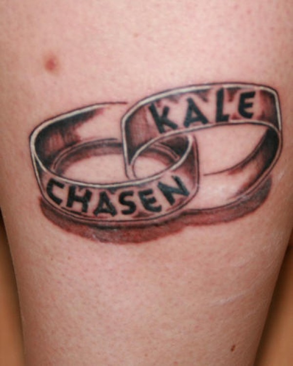 腿部棕色戒指上的孩子名字纹身