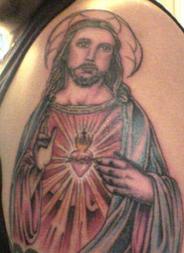 肩部天主教耶稣形象纹身图片