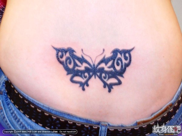 分享一款腰部时尚性感的蝶恋花纹身图案_腰部纹身图案大全_纹身图吧