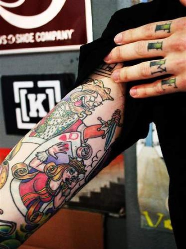 手臂彩色国王谋杀纸牌皇后纹身图片