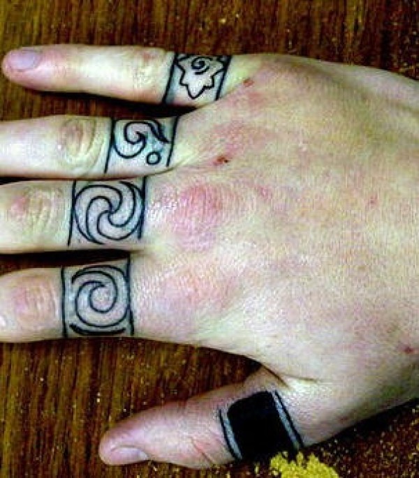 手指黑色宽戒指图腾纹身图案