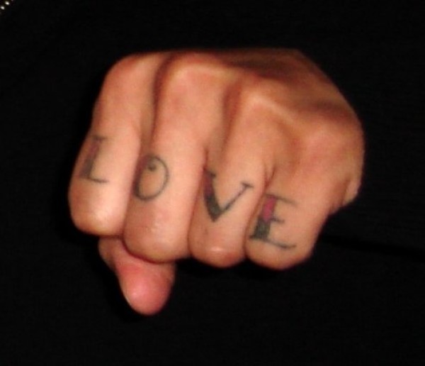 手指彩色爱字英文纹身图片