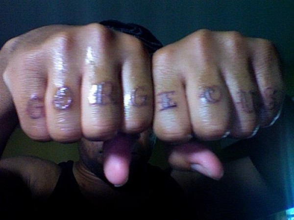 手指彩色华丽字母花体纹身图案