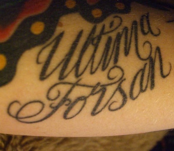 背部黑色拉丁文字母纹身图片