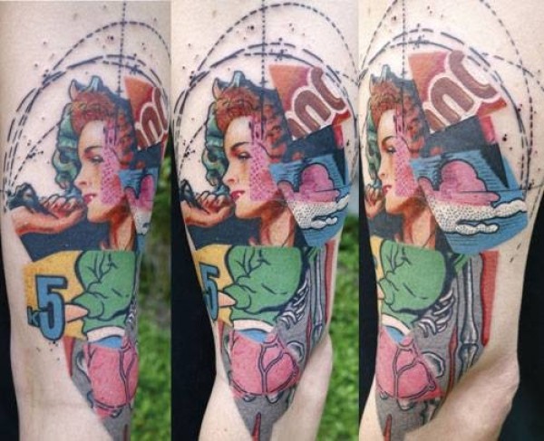 腿部素描风格的彩色妇女肖像纹身