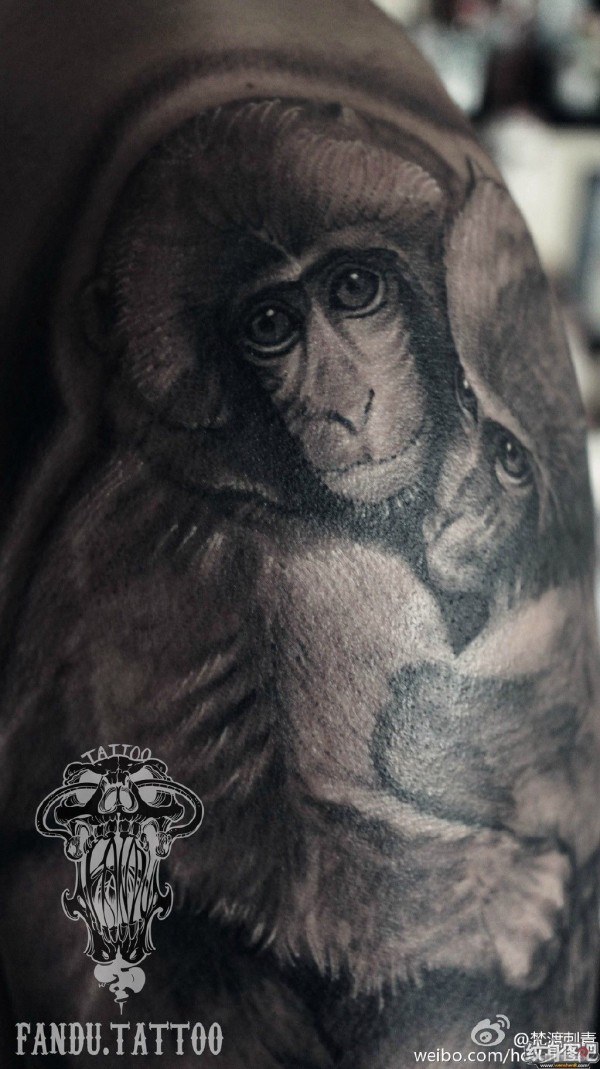 两只相濡以沫的猴子~好有爱