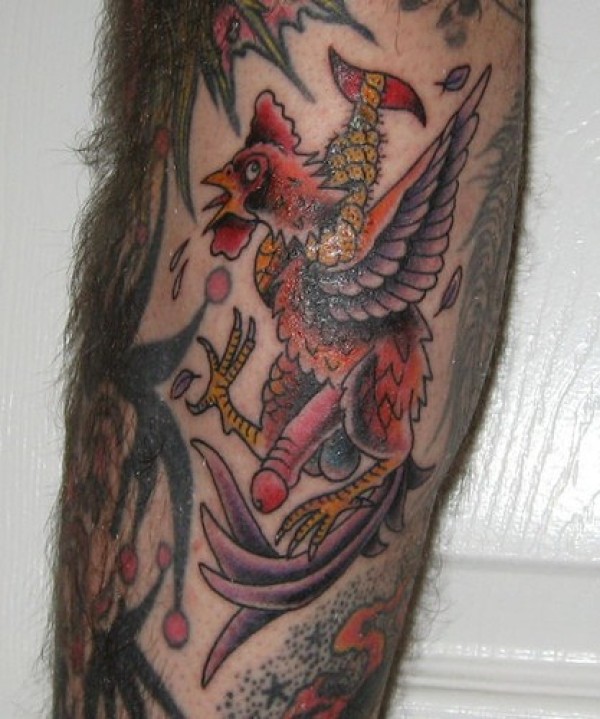 腿部彩色公鸡裸体不雅纹身