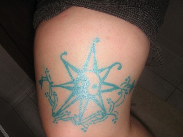 腿部彩色太阳图腾纹身图案
