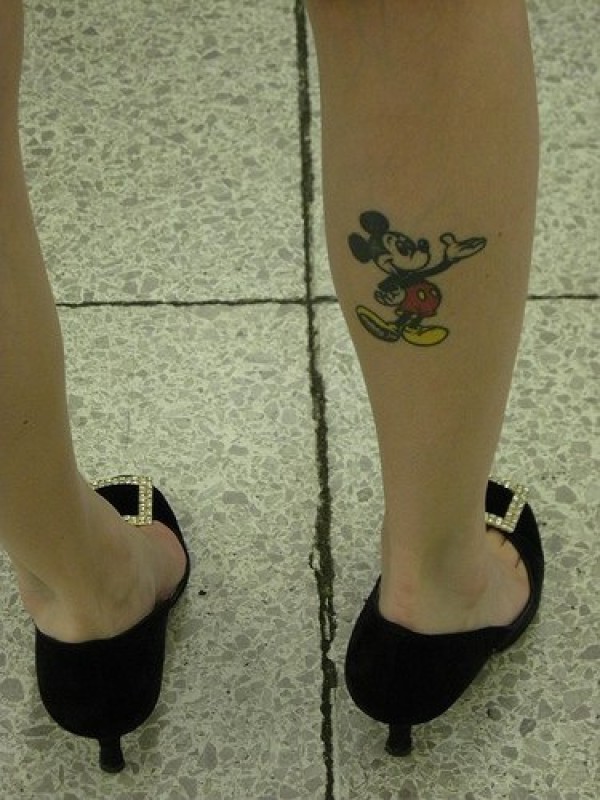 腿部彩色卡通漂亮米老鼠纹身