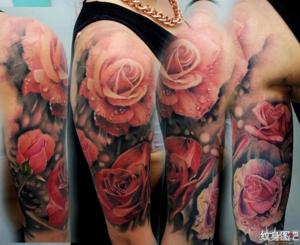 欧美玫瑰纹身 男生手臂上花朵纹身图片