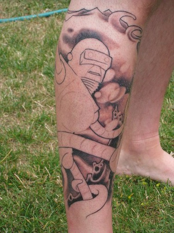 腿部棕色大白色机器人纹身图片