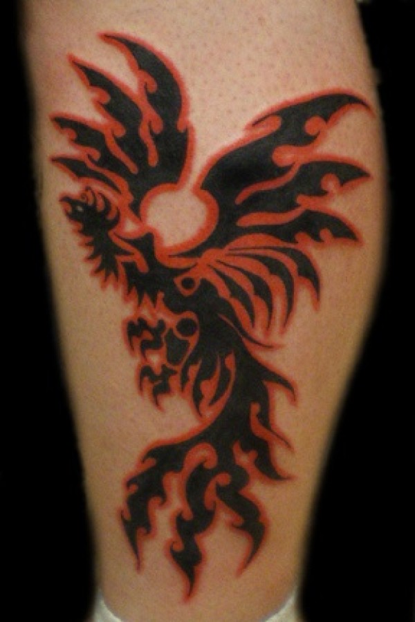 腿部彩色简约的凤凰纹身图片
