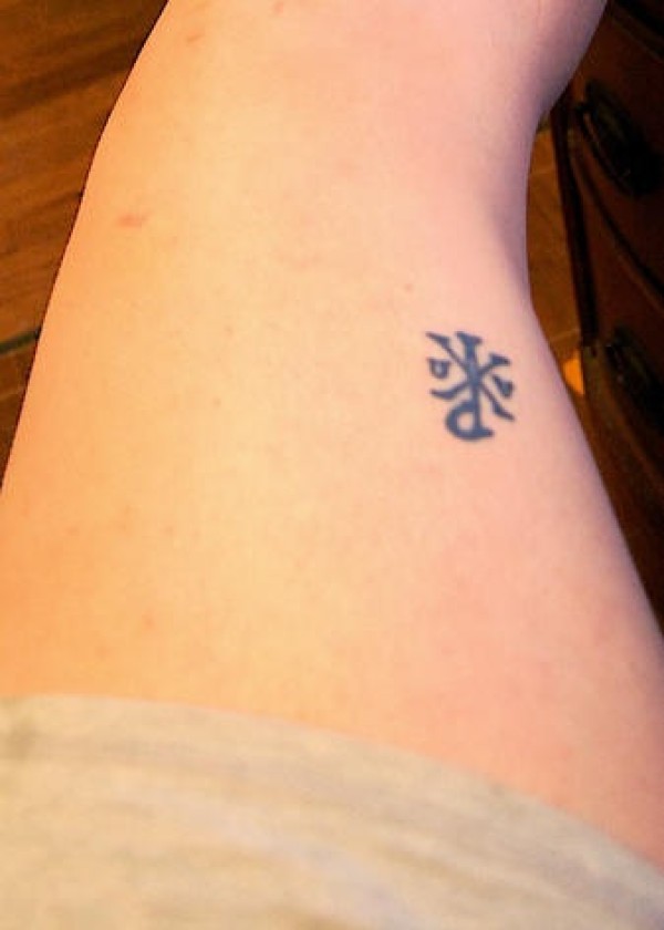 腿部简约小圣油纹身图案