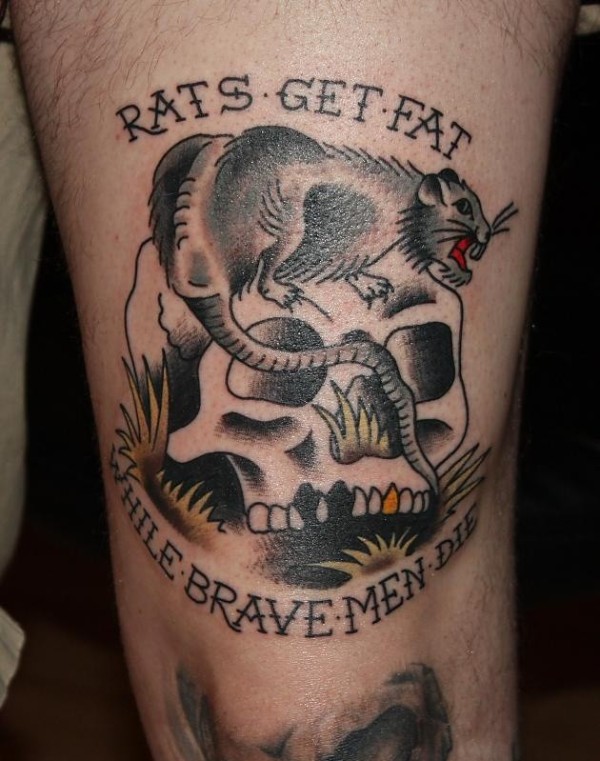 老学校的风格色彩的骷髅与老鼠纹身
