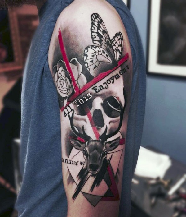 肩部PS图象处理软件风格的彩色人体骷髅纹身