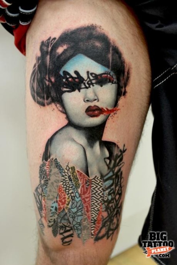 小腿艺妓纹身图案