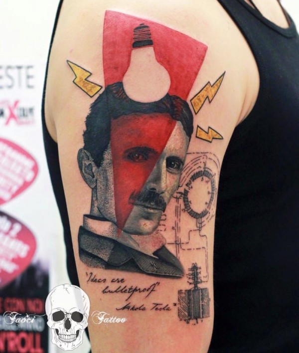 PS图象处理软件风格的彩色尼古拉特斯拉纹身