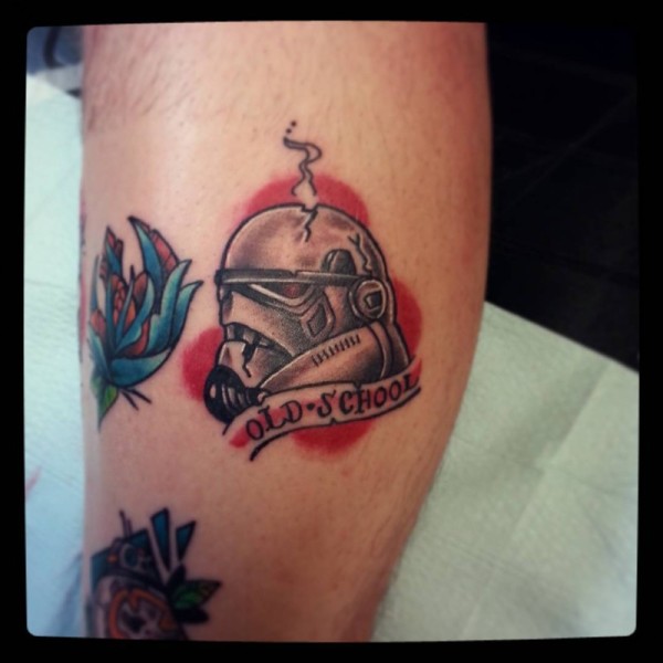 腿部彩色老学校风格风暴骑兵头盔纹身