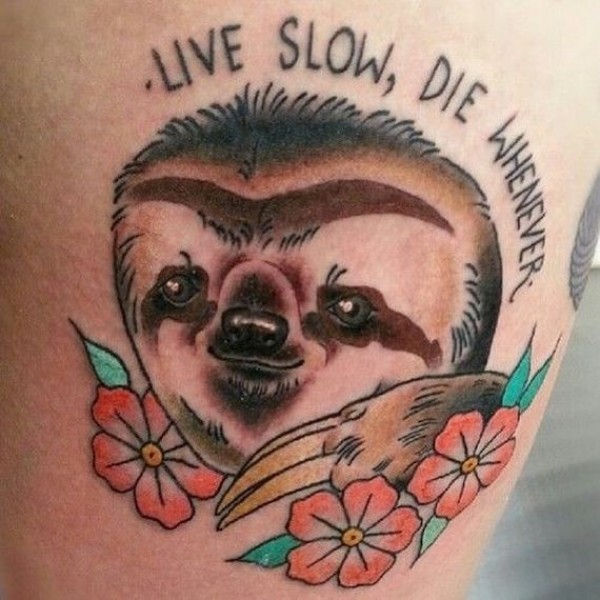 纪念馆的风格腿部字母与树懒纹身