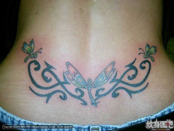 分享一款腰部时尚性感的蝶恋花纹身图案_腰部纹身图案大全_纹身图吧