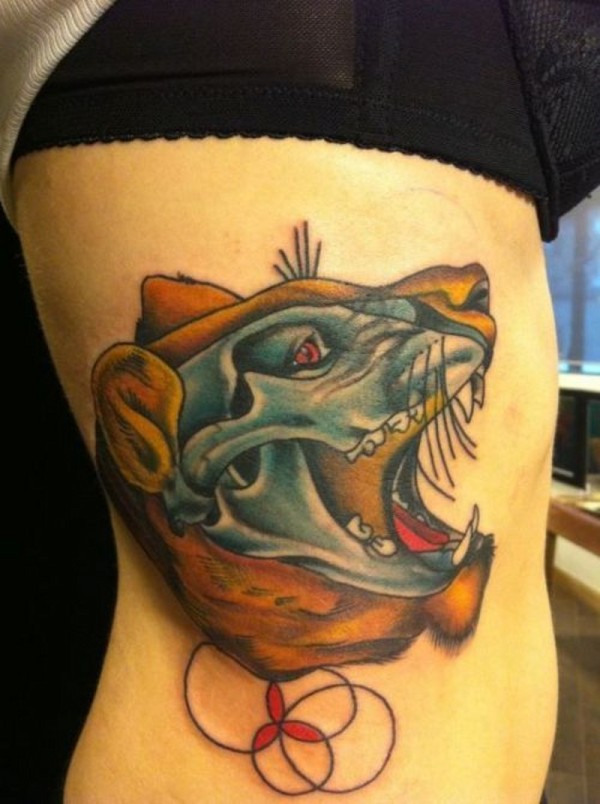 腰侧彩色X射线狮子纹身图案