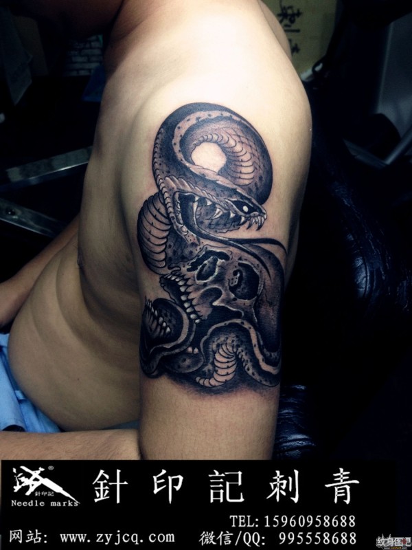 大臂骷髅蛇纹身-福建纹身-三明针印记刺青胡宇作品