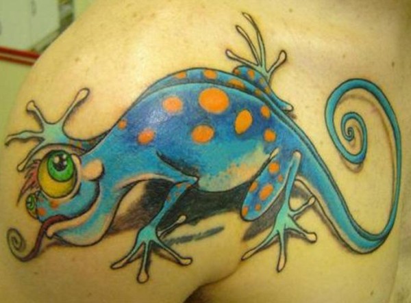 肩部彩色卡通疯狂的蜥蜴纹身图片