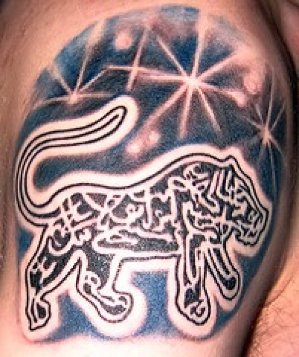 肩部星空狮子图腾纹身图案