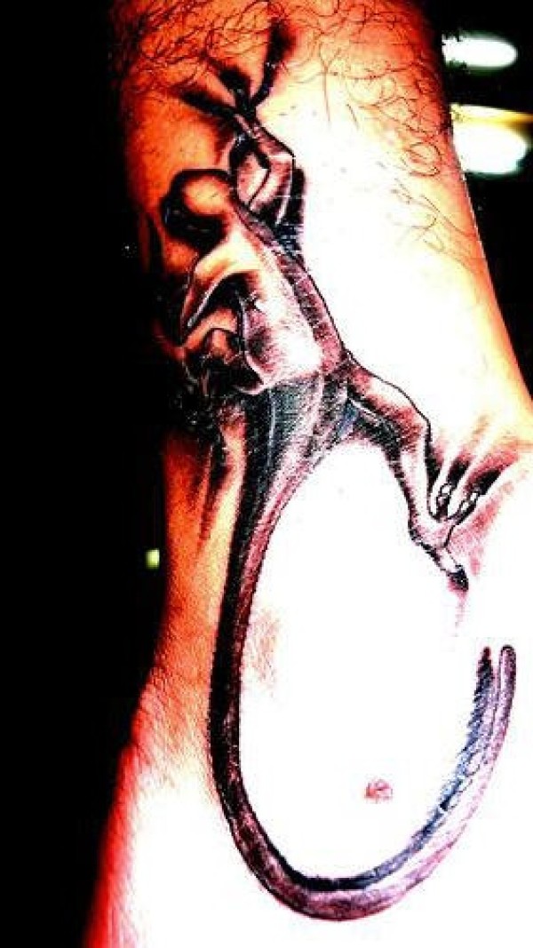 脚裸黑棕色蜥蜴爬行皮肤纹身