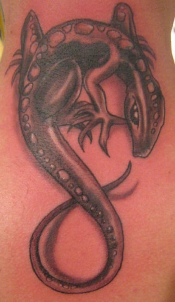 手臂黑棕色蜥蜴永恒符号纹身图片