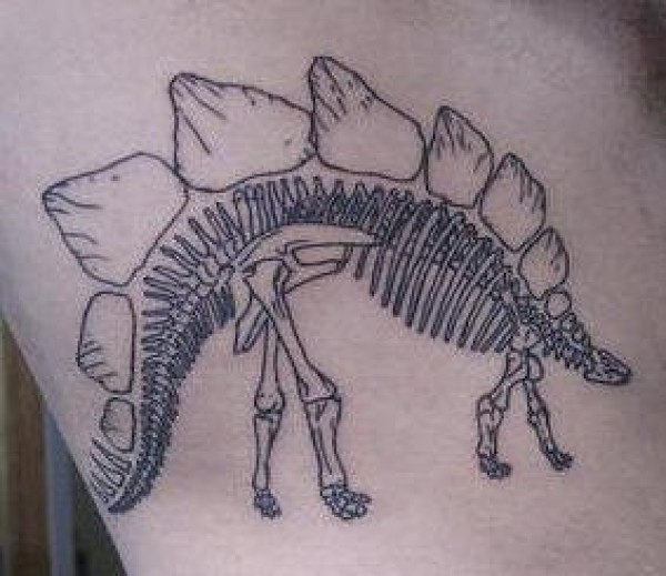 手臂黑色剑龙的骨架纹身图案