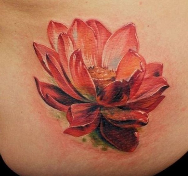 腰部彩色逼真的红莲花纹身图片