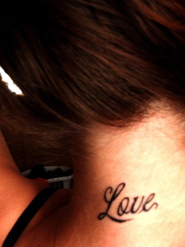 女性脖子英文字母纹身图案