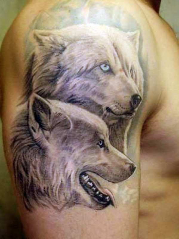 肩部灰色可爱的北极狼纹身图片