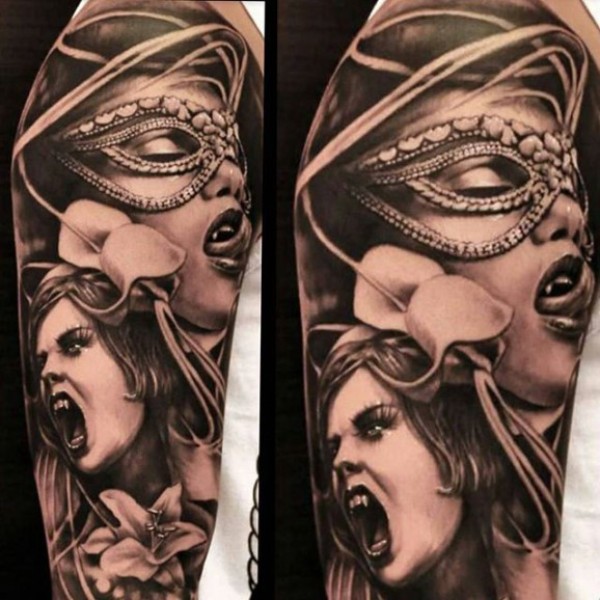 手臂棕色两女吸血鬼纹身图案