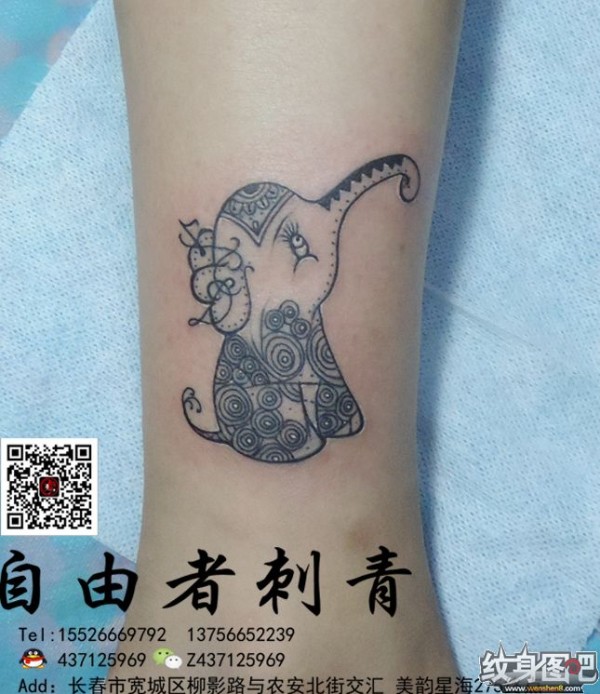 小腿上一款大象纹身图案_腿部纹身图案大全_纹身图吧