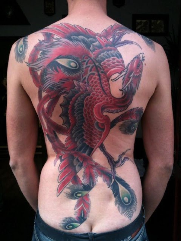 背部彩色可爱的凤凰纹身图案
