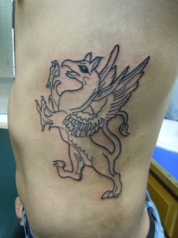 腰侧线条形状格里芬纹身图片