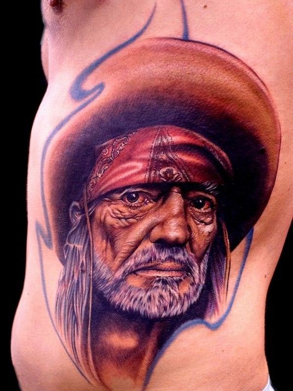 现实主义风格的彩色腰侧墨西哥老人纹身