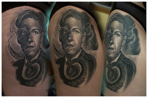 腿部雕刻风格的神秘男子和章鱼纹身